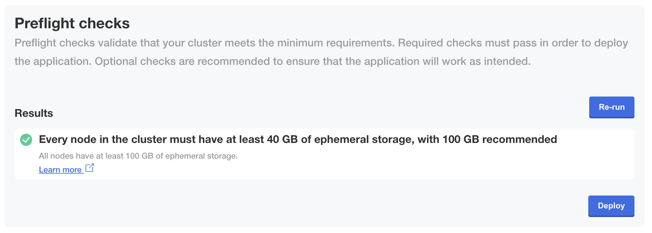 message: All nodes have at least 100 GB of ephemeral storage.