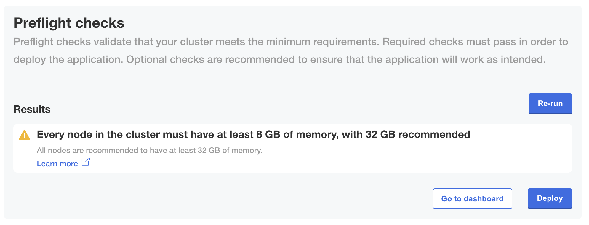 message: All nodes are recommended to have at least 32 GB of memory.